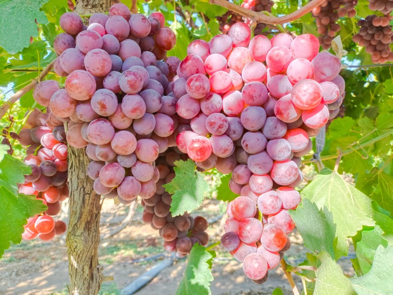 克瑞森葡萄,又稱為克倫生無核,果粒亮紅色,果肉淺黃色,半透明肉質,香脆可口,可溶性固形物含量20%以上,風味甜,品質極佳。