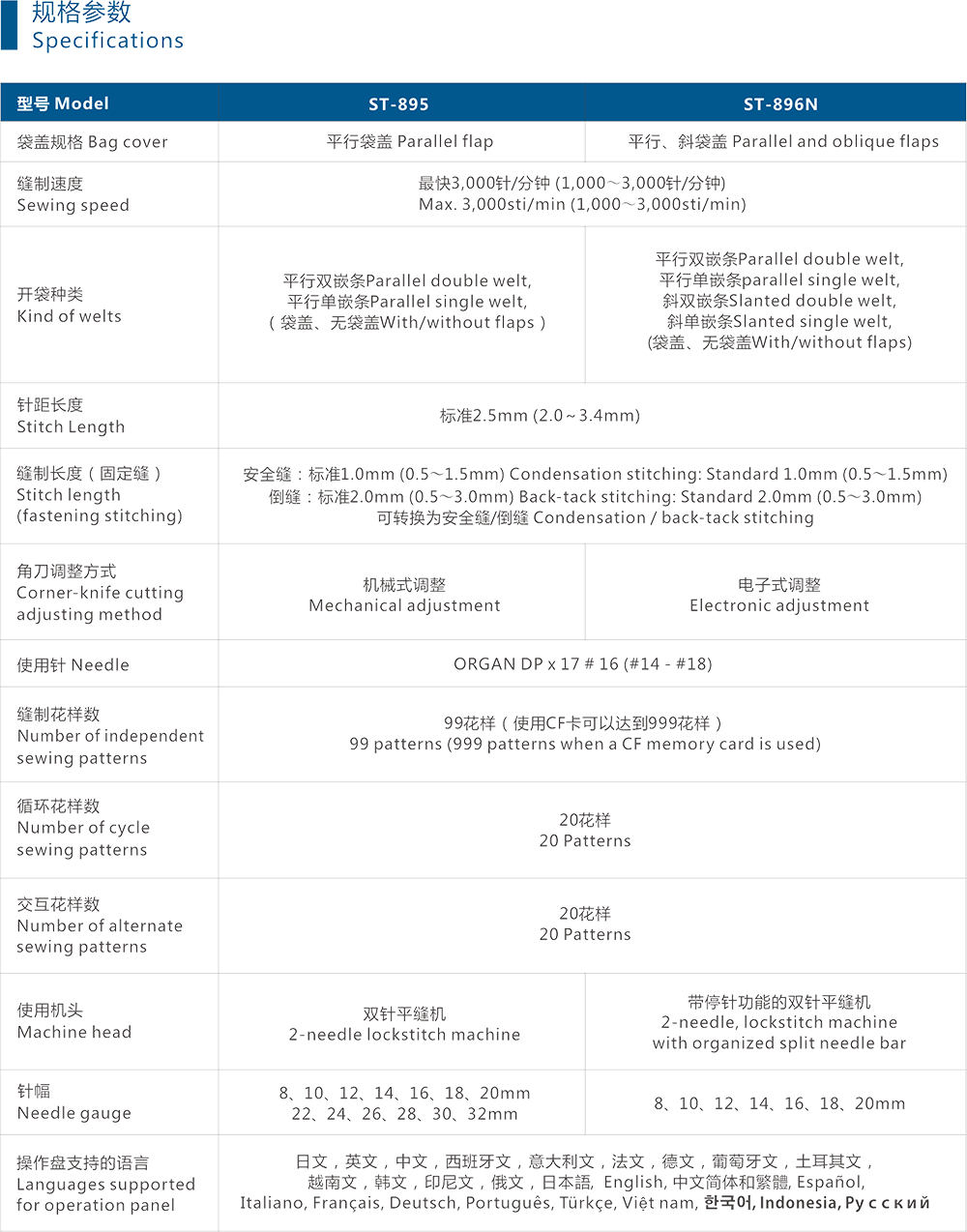 Double-/single-welt sewing can be changed over by the simple touch of a key on the operation panel.