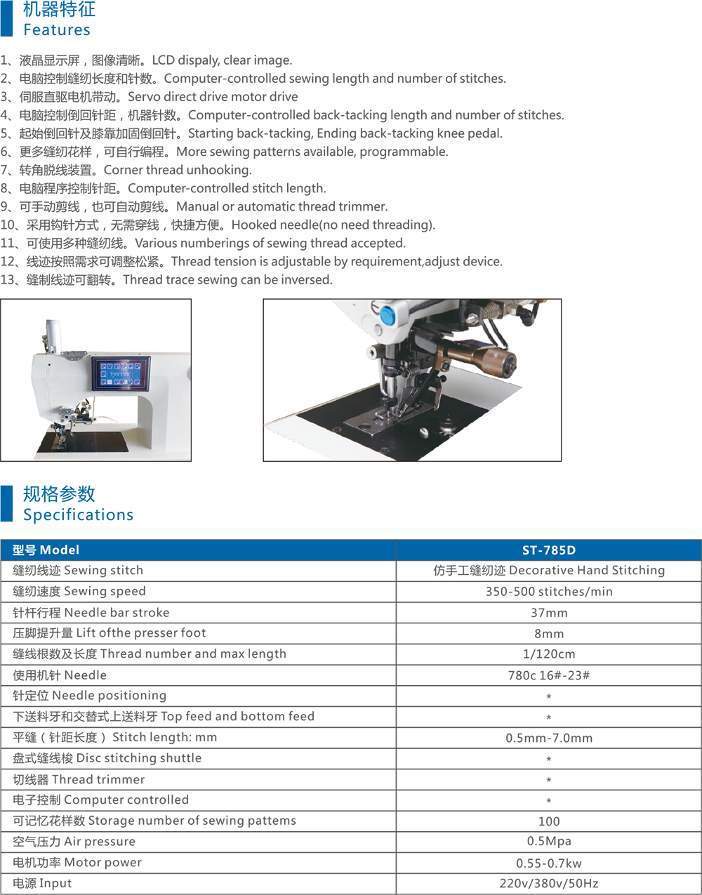 本產品主要針對于服裝仿手工線跡縫制,應用于西裝,大衣,休閑裝,職業裝等制品。