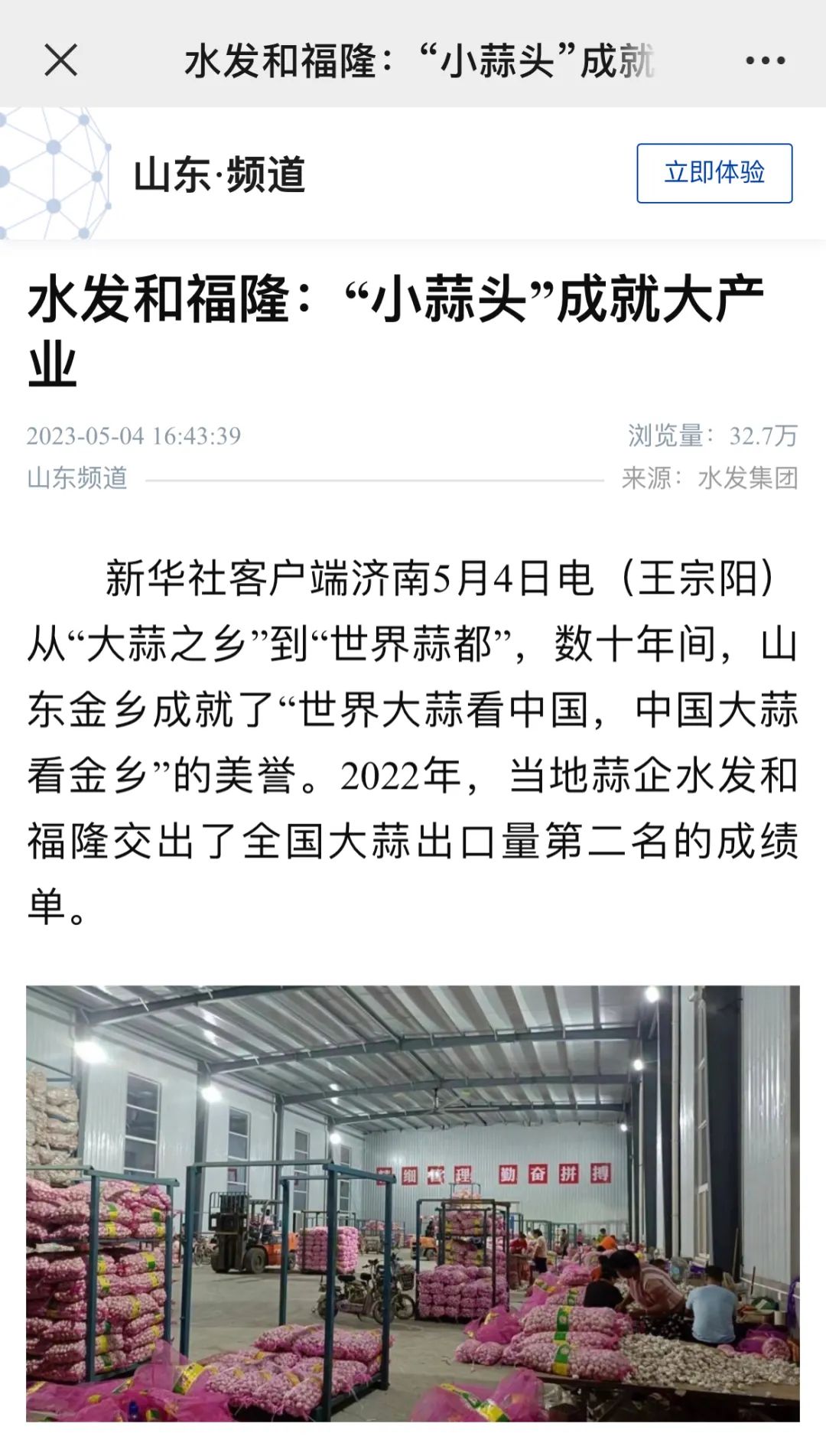 從“大蒜之鄉”到“世界蒜都”,數十年間,山東金鄉造就了“世界大蒜看中國,中國大蒜看金鄉”的美譽。2022年,當地蒜企水發和福隆交出了全國大蒜出口量第二名的成績單。今年,水發和福隆自我加壓,提出力爭全國出口量第一的任務目標。