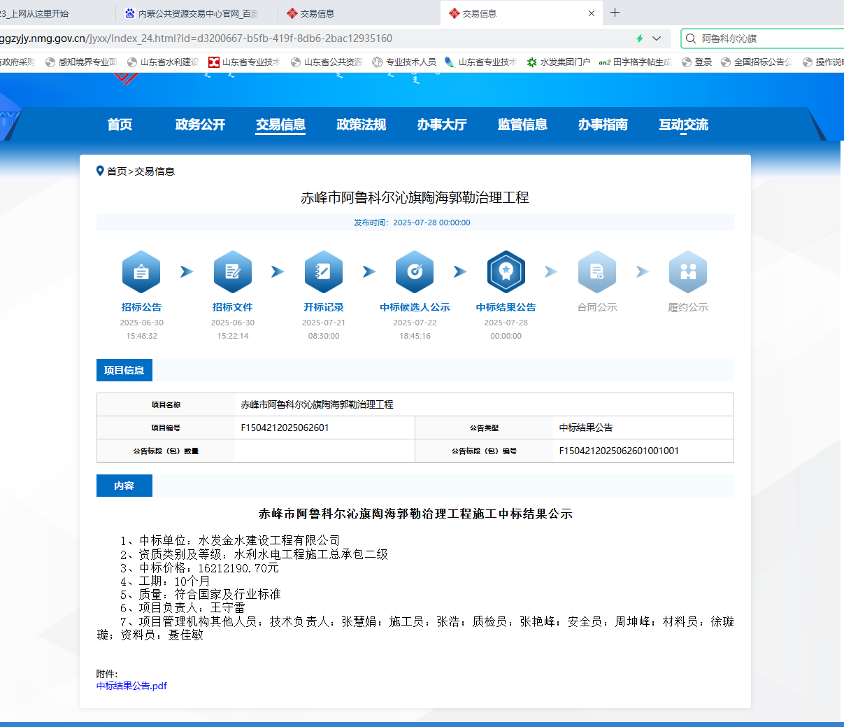 近日,內蒙古赤峰市阿魯科爾沁旗陶海郭勒治理工程施工項目招標結果揭曉,水發金水建設工程有限公司成功中標。
